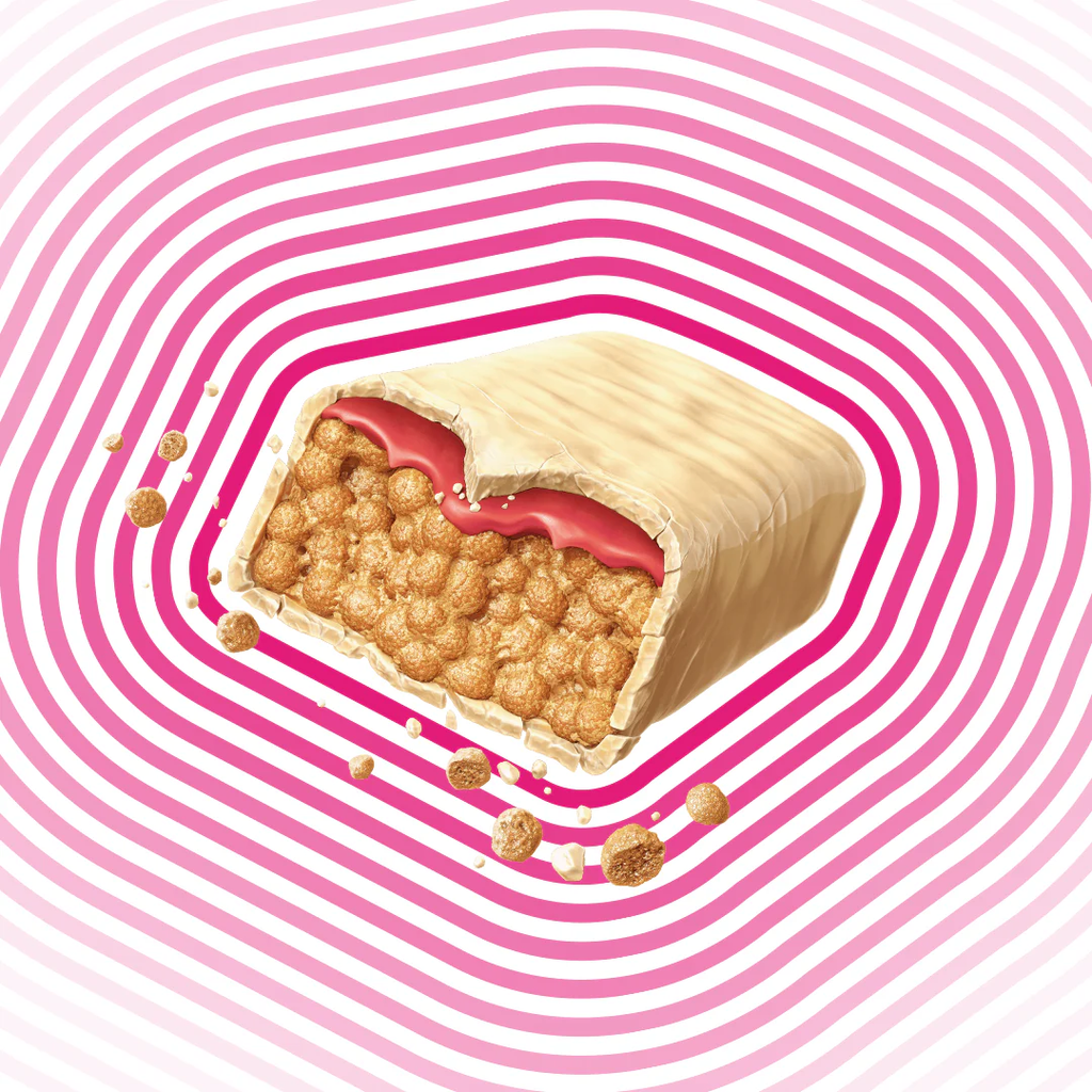 Crispies proteicos (proteína de soja isolada), cobertura sabor chocolate branco diet (gordura vegetal, leite em pó desnatado, proteína de soro do leite concentrada, polidextrose, edulcorantes maltitol e sucralose, emulsificante lecitina e aromatizante), recheio de morango diet, polidextrose, gordura vegetal, goma acácia, morango desidratado, proteína de soro do leite concentrada, colágeno hidrolisado, edulcorante xarope de maltitol, umectante glicerol, aromatizantes, emulsificante lecitina e conservante sorbato de potássio.